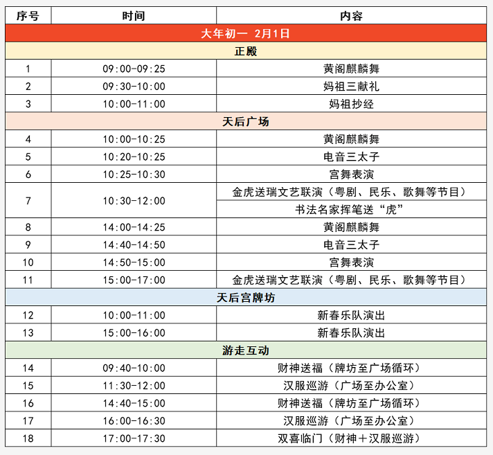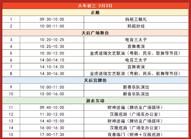 虎年春节年初一至年初三,南沙天后宫开放三献礼免费体验名额,公众号前20位报名者可免除三献礼体验费用。