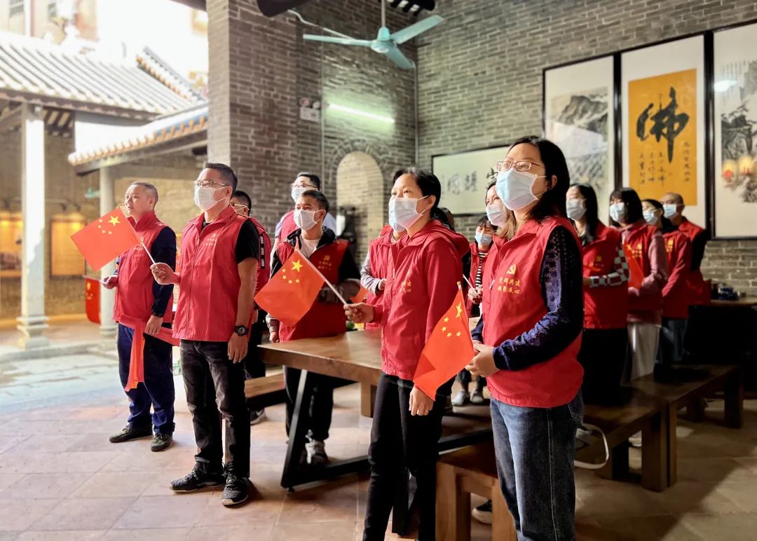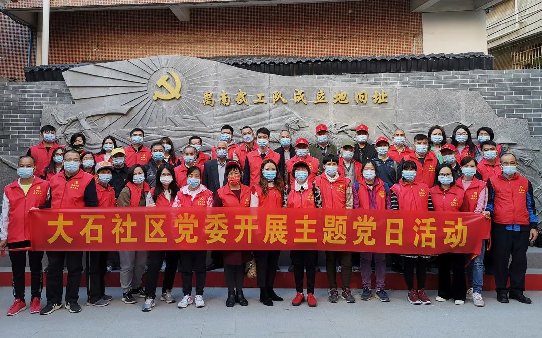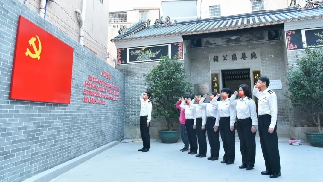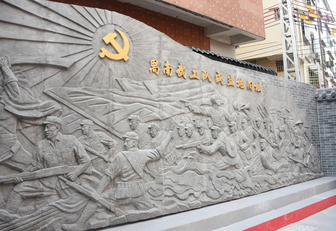还将公祠外面空地围墙进行加高,设置宣誓墙、党旗及简介,专门制作禺南武工队成立地旧址浮雕墙,更换门口栏杆重新打造门楼等提档升级改造工作,同时对门口小公园、池塘等周边环境进行整治优化,并于2021年7月揭牌正式对外开放,成为党员群众了解大石红色故事、红色历史的红色遗址打卡点。