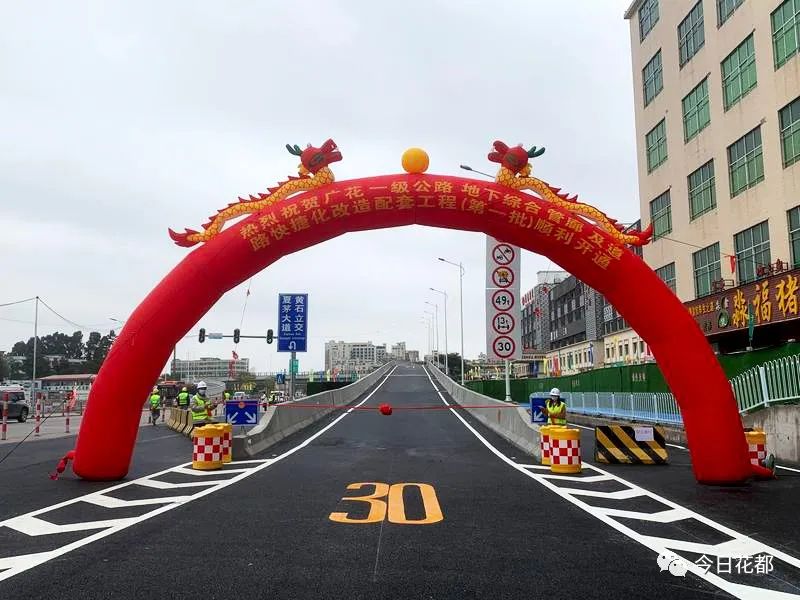 广花一级公路快捷化改造全线改造内容为拓宽现状双向6车道至双向8~10车道。800米道路扩宽工程已全部完成施工建设,包含新建机动车道、非机动车道和人行道、绿化带改造施工。除此之外,快捷化改造还针对性地解决了交通信号灯多,造成交通拥堵的问题。为了解决广花一级公路的交通拥堵问题,