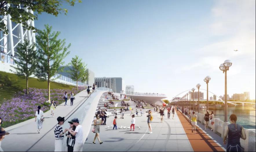除了满足上述综合需求外,广州也计划通过本次景观环境提升来充分发挥珠江沿岸的城市公共客厅功能,使沿江公共空间融入文化、体育、游憩设施,完善多元化的滨水道路网络,创造多元包容、和谐宜居的城市公共空间,吸引城市生活回归水岸。
