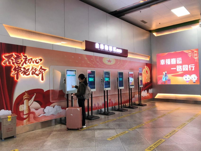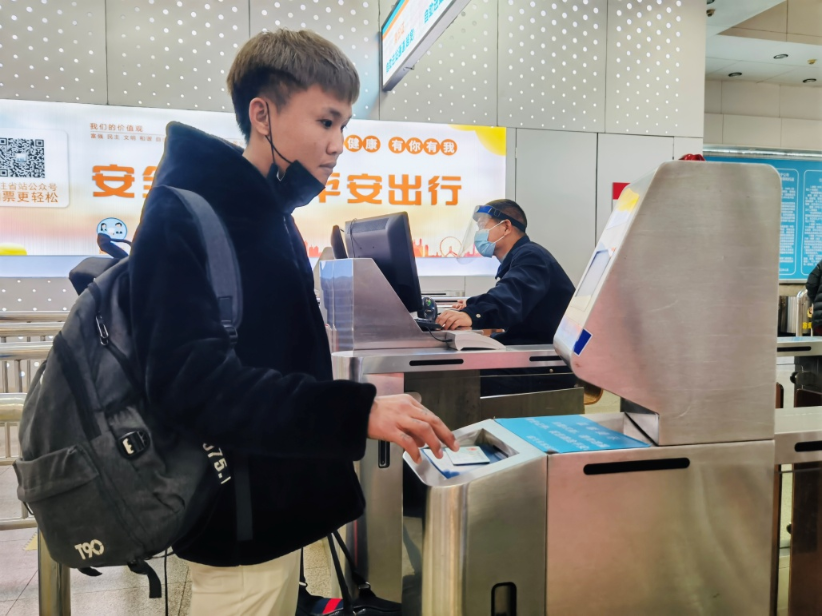 旅客进站需查核人、票、证合一才可通过。据介绍,为加快旅客进站的速度,简化查核流程,省站开通了6条自助进站通道。通过提早将旅客的客票信息传输到信息化设备系统,旅客进站时只需“刷身份证+刷脸”,闸机便能自动比对人脸信息、身份信息与车票信息,智能实现人、票、证一秒查核,以更低的成本,大大提高旅客进站效率。一证在手,进站顺畅无忧。