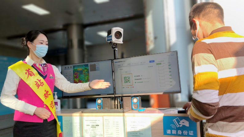 春运期间,旅客出行轨迹多且复杂,省站为精确识别中高风险地区流动人员,降低站场疫情传播风险,除了保持一米距离劝导、站场消杀通风等常态化防疫工作,还增设了热成像体温筛检仪、身份证核验平台等“一证通”设备,并首次投入春运使用。简单一步,解锁健康核验。