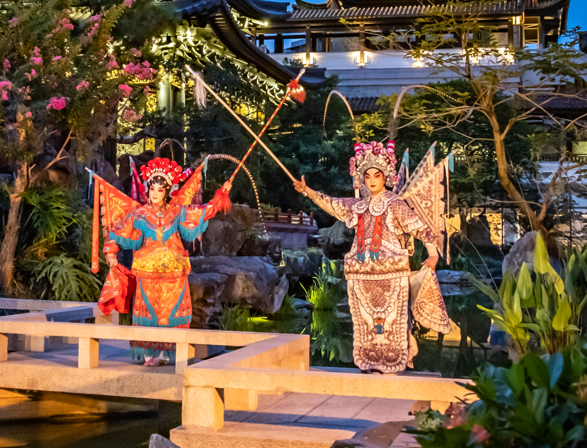除了白天,夜间演出同样精彩。正月初一晚,粤剧艺术博物馆园林将编排“粤韵园音”夜间实景演出。《游园惊梦》《梦会太湖》《缘梦荔枝湾》等经典戏目、曲艺弹唱依托园林叠石、戏台、船舫、湖面等实景呈现,将为观众带来新的视觉体验。