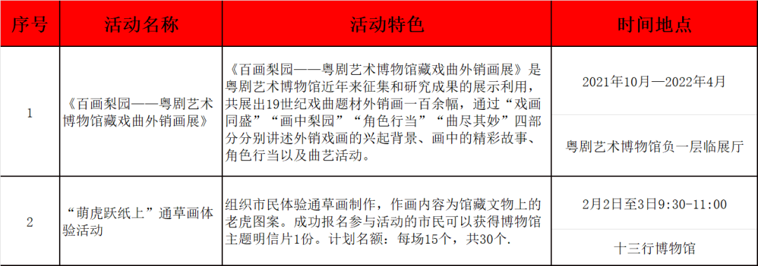 除了邀请广彩、牙雕、西村窑等非遗传承人开展非遗项目体验培训班以外,十三行博物馆也将在正月初二和初三举办“萌虎跃纸上”通草画体验活动,让市民以馆藏文物上的老虎图案为作画内容,体验通草画制作工艺的精妙绝伦。2月1日至2月6日,位于荔湾区花地大道309号花地湾生活馆也将举行年画彩绘、窗花剪纸、 立春插花、彩绘狮子头等丰富多彩的迎新年活动。