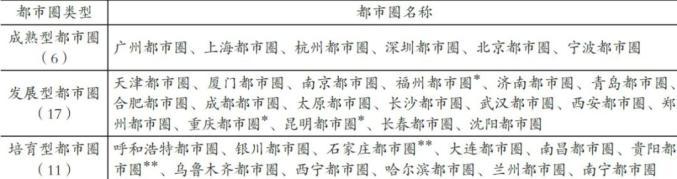 广州都市圈、上海都市圈、杭州都市圈、深圳都市圈、北京都市圈、宁波都市圈。