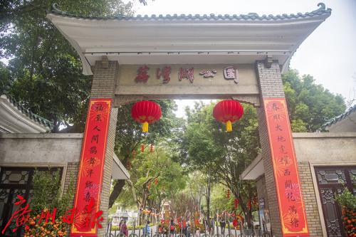 广州过年,花城看花。1月28日,春节临近,位于老西关的荔湾湖公园洋溢着喜庆的气氛,各种装饰一新的景观适合到此打卡拍照,靓丽的花船停泊在湖畔,重现历史悠久的水上花市场景,让市民游客提前感受到广州的年味。