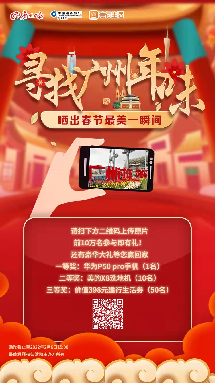 为了留住这一“年味”,分享广州过年的美好生活,更好地读懂广州、热爱广州、奉献广州,1月29日起,广州日报联合建设银行广州分行,在线发起“寻找广州年味,晒出春节最美一瞬间”活动,向广大街坊市民征集过年期间最有年味的精彩照片。
