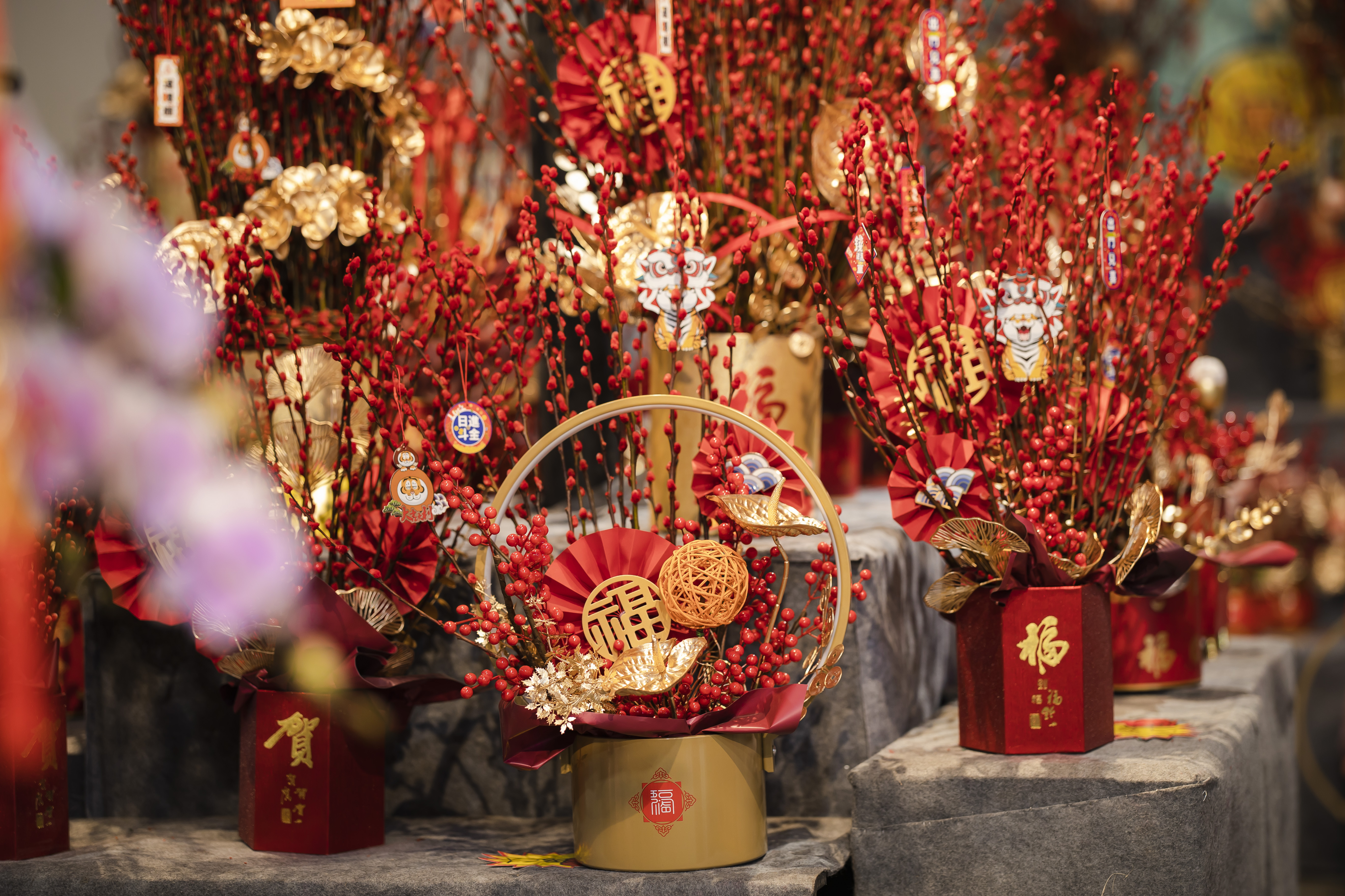 一盆花团锦簇的年宵花