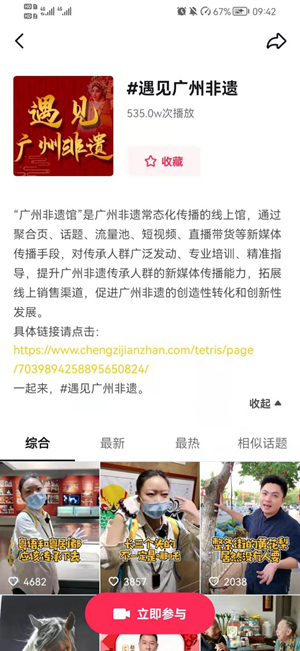 在聚合页基础上,发起抖音话题#遇见广州非遗,在非遗传承人们和爱好者们的镜头下,越来越多抖音用户开始了解广州非遗。话题页共聚合了300多条非遗短视频,内容互动量达2.6万,产生了500万+播放曝光。