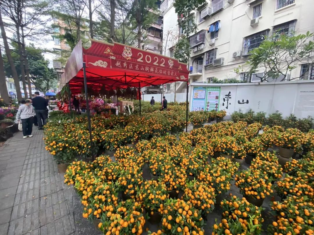 广州过年,花城看花。今年春节,按照“线上为主、线下为辅”原则,广州不再集中开展迎春花市活动,越秀区共设置了13个线下售卖点,东山街辖区内共设两个地点:东山大街、寺右二马路。鲜花品种包括桃花、蝴蝶兰、年桔等春节主流花卉品种,持续时间为1月20日-31日,每天09:00-21:00。