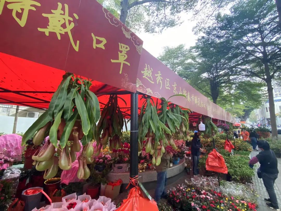 寓意大吉大利的年桔、节节高升的银柳、猪笼入水的猪笼草、高端大气的蝴蝶兰、清新淡雅的蕙兰……从1月20日开始,东山大街和寺右二马路的的两处线下售卖点正式开市,吸引了不少街坊前来选购年花。