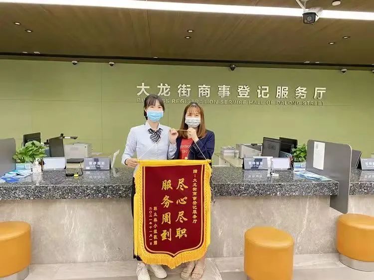 2021年,大龙街政务服务窗口受理业务按时办结率100%,满意率100%,收到锦旗4面及表扬信4封,获得群众肯定。