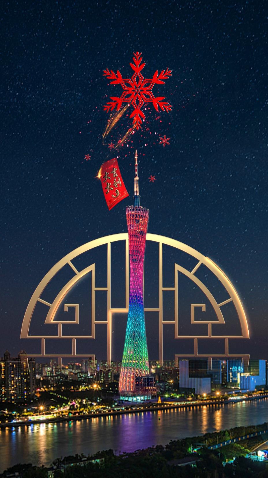 当窗花闪现,广州塔顶飘落一封写着“大吉大利”的利是。