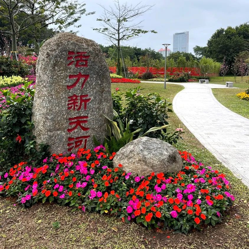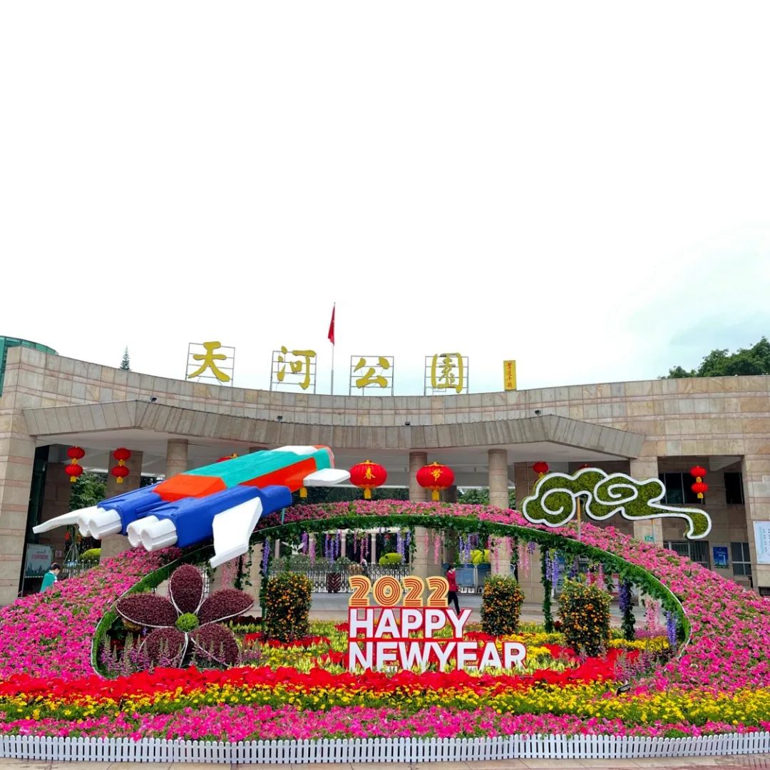 此外,天河儿童公园、天河体育中心南门等地点,也有不同主题的立体花坛,为虎年新春更添色彩。
