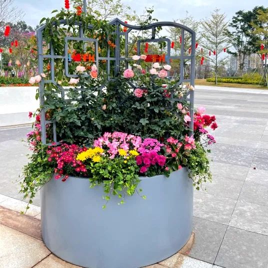 满洲窗花箱、三角形坐凳花箱、木棉花花箱、银色不锈钢花箱……大家有留意吗?天河公园、广州东站和天河路等地点周边,新增了许多新款花箱。这些花箱能自由组合,且功能多变。尤其是花箱坐凳的构思,既实现了花箱的功能,又满足了游人休息的需求。