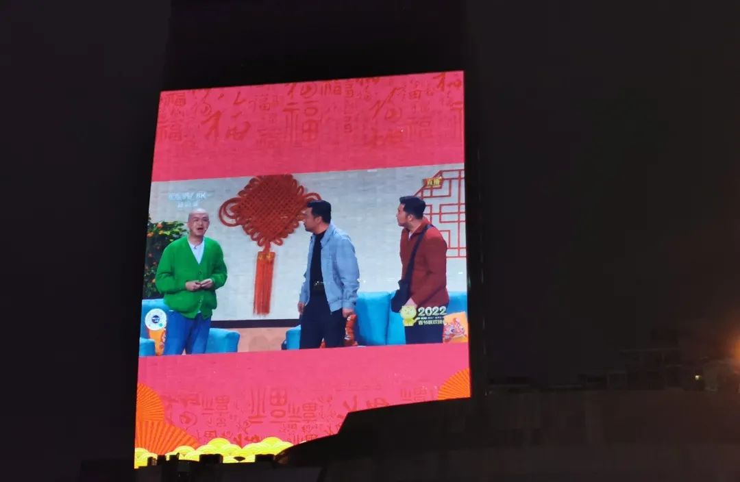 架放于东街口处的8K大屏,此时也正在直播咱总台的虎年春晚。