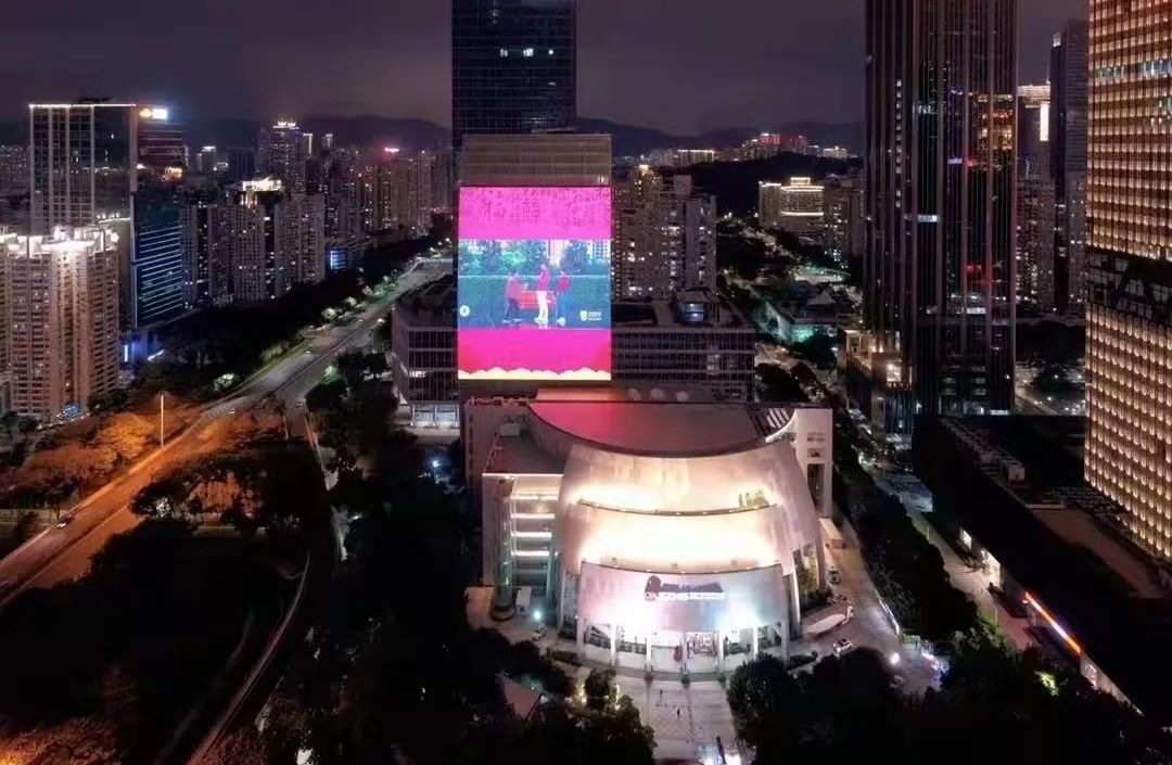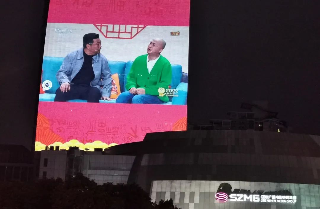 深圳广电楼外大屏则在直播小品《休息区的故事》。