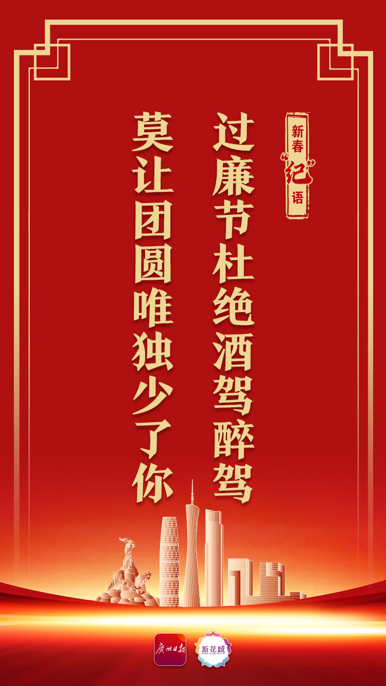 春节期间,各类聚餐增多,亲友间聚会,小酌两杯在所难免,但切莫因此麻痹大意,越到关键节点,越要保持清醒!广大党员干部理应在遵纪守法等方面发挥带头示范作用,牢固确立法律红线不能触碰、法律底线不能逾越的观念,不得以任何理由和借口酒后驾车,牢记“喝酒不开车,开车不喝酒”,坚决杜绝酒驾醉驾!只有廉洁自律践于行,才能团圆家和万事兴。