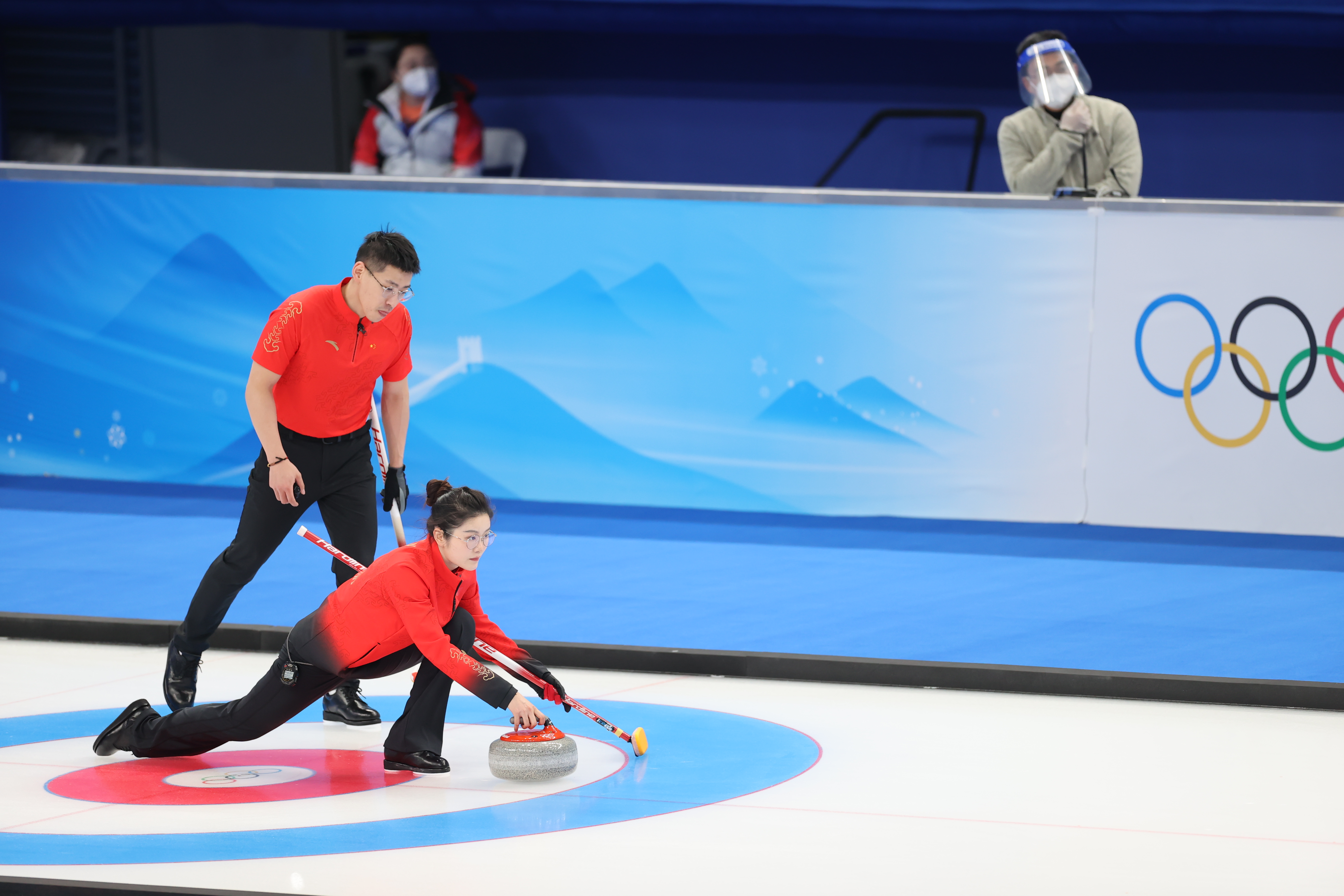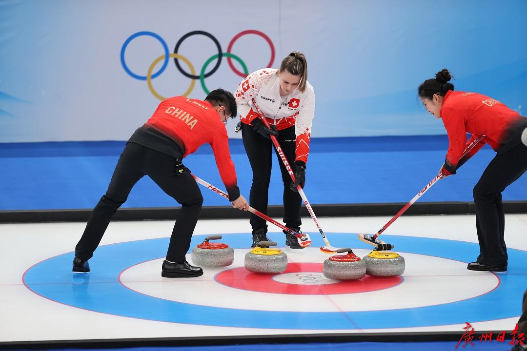 2日晚的冬奥会冰壶项目率先开始了混双循环赛第一轮,中国组合范苏圆和凌智对垒瑞士组合,前5局中国组合进攻积极,防守合理,每一次精彩投壶都赢得满场掌声,除了第四局与对手均没得分外,其余四局每局都1分进账,因此5局过后以4比2暂时领先。