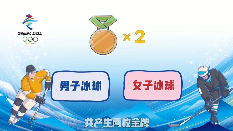北京2022年冬奥会冰球比赛将在北京赛区的国家体育馆和五棵松体育中心进行,共产生2枚金牌,分别是男子冰球和女子冰球。