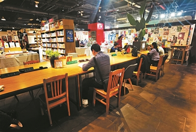 位于正佳广场的1200bookshop笼罩在一片浓郁的阅读氛围中。餐饮消费区的大圆桌围坐了不少安静读书的年轻人,“读书室”也有个别隔间亮着灯,有人正伏案阅读、自习。“95后”女生晴子背了个大书包,正仔细挑选想读的书。她表示,“平时工作太忙,阅读计划一再搁置。所以这次春节假期我立了个‘读书flag’,起码读完一两本一直想看的书。”
