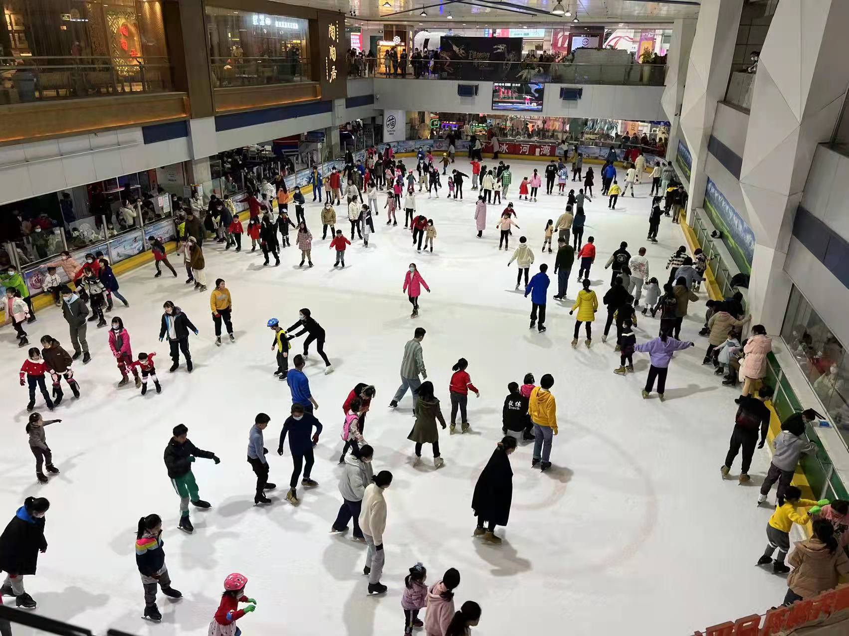 正佳冰河湾真冰溜冰场内有不少市民来体验