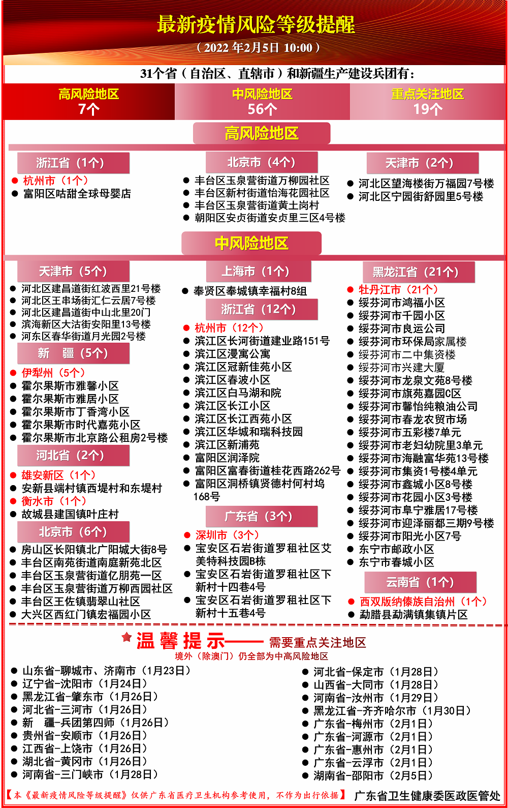 最新疫情风险等级提醒(截至时间:2022-02-5 10时)