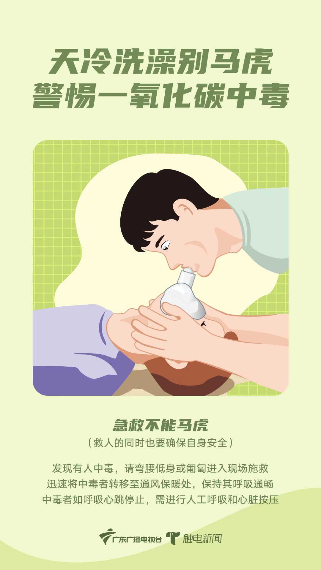 因为一氧化碳的比重比空气略轻,会浮在空气的上层,因此无论是自救还是救人,都要记得弯腰低身,迅速离开中毒现场。