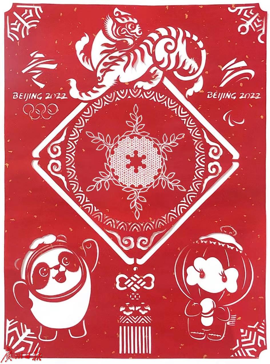 冬奥剪纸作品《虎虎生威 喜迎冬奥》