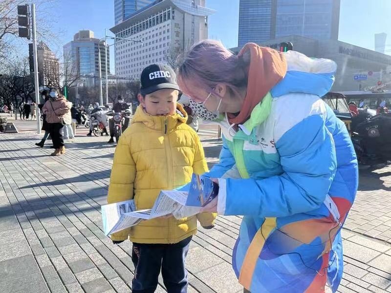 「這次的2022年北京冬奧會是第24屆,在北京和河北張家口舉辦……」在冬奧城市志願者三里屯站,手拿冬奧宣傳冊的志願者李卓瀅,俯下身子向一位路過的小朋友介紹冬奧會相關知識……