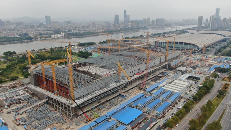 由中建八局承建的广交会展馆四期展馆扩建项目,总建筑面积约56万平方米,项目建成后将使广交会展馆总建筑面积增加至168万平方米,成为全球最大的现代化会展综合体之一。