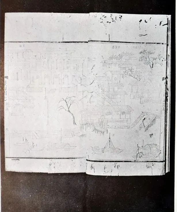 A sketch of the street view of the Thirteen Hongs during the reign of Emperor Daoguang in the Qing Dynasty. 绘于道光年间的十三行街景草图