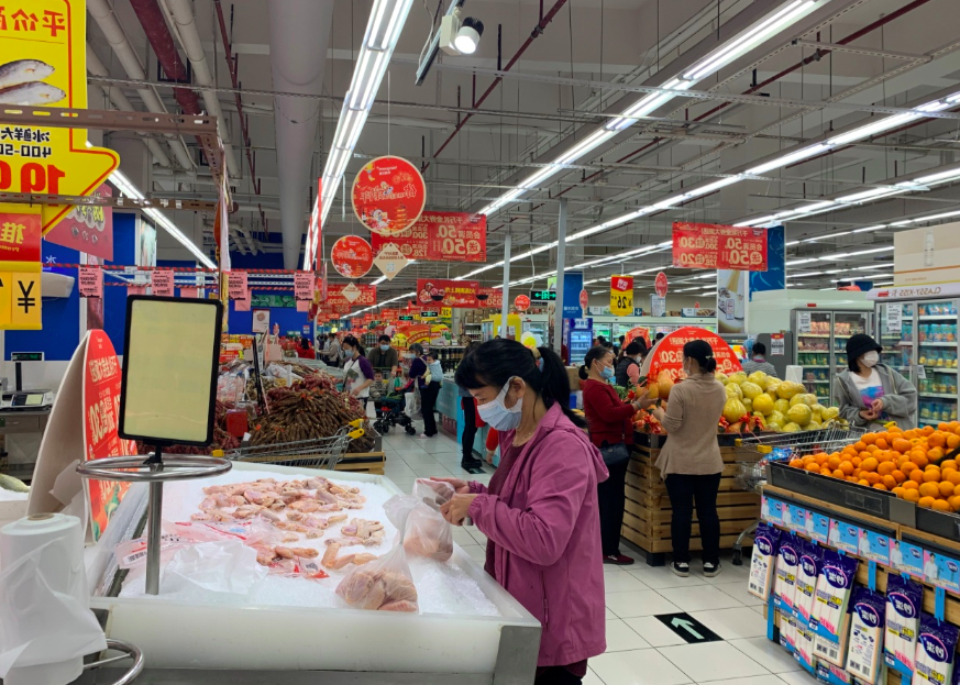 各大肉菜市场做好疫情防控措施,坚持“不打烊”,保持充足的开档率。“生鲜超市的绿色蔬菜、新鲜肉类、水产海鲜、禽蛋等供应品种丰富,价格较平常有小幅上涨,幅度在2-5元/斤,但与往年价格相差不大。”某商场负责人介绍。