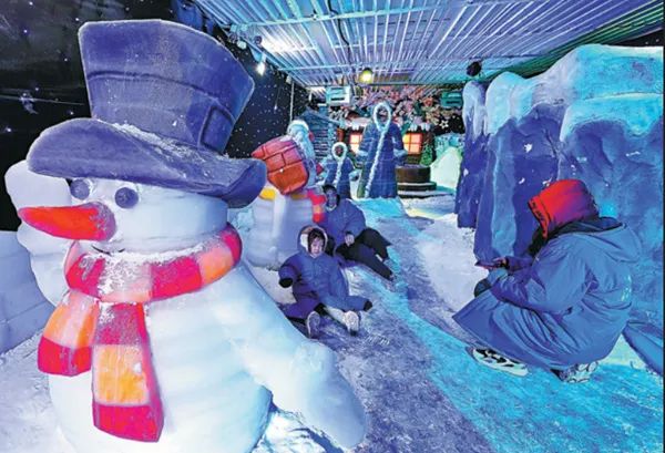 Tourists visit an ice and snow world in Qingzhou, Shandong province. (Photo provided to China Daily)