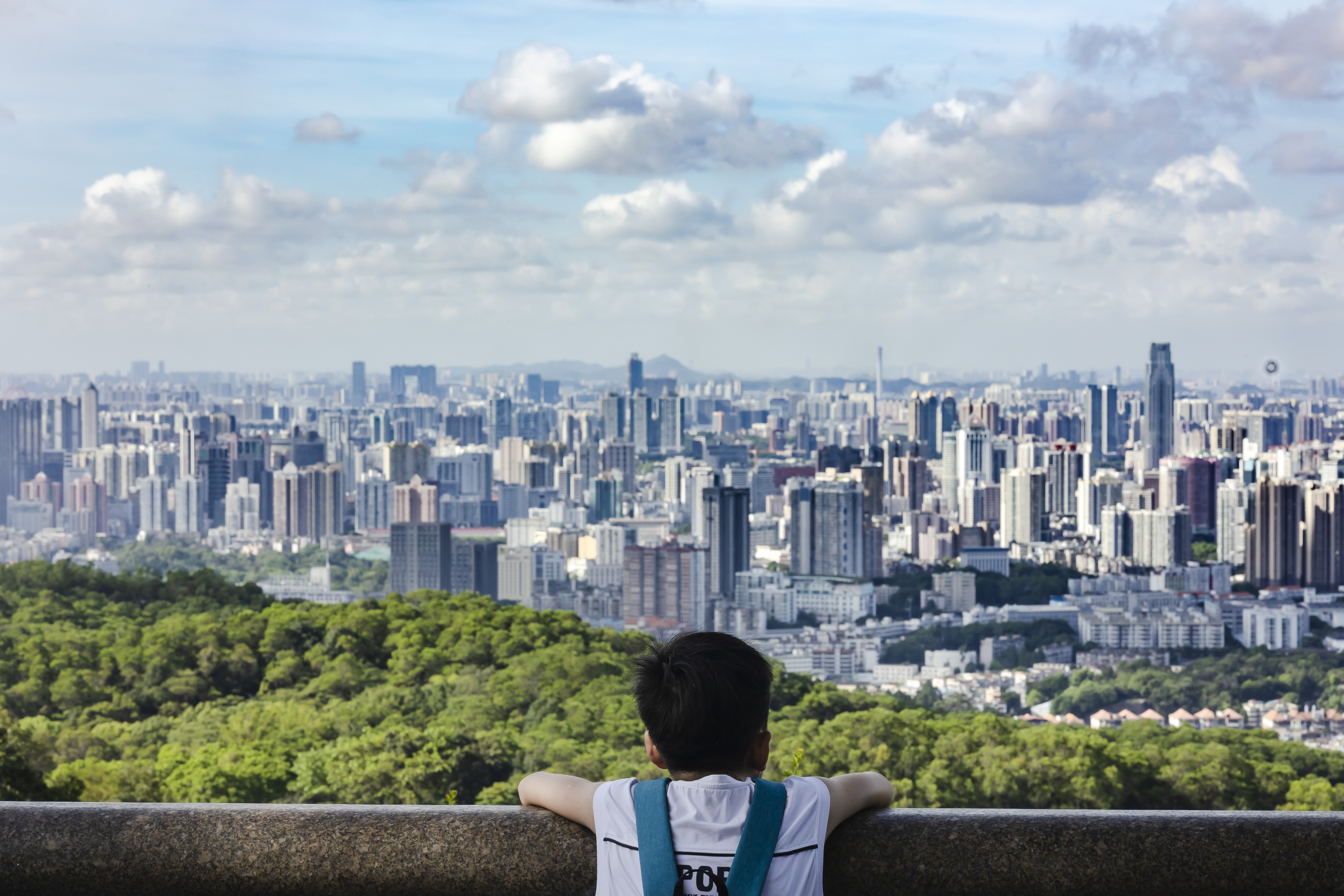 一名男孩在白云山远眺城市美景。(资料图片)广州日报全媒体记者陈忧子 摄