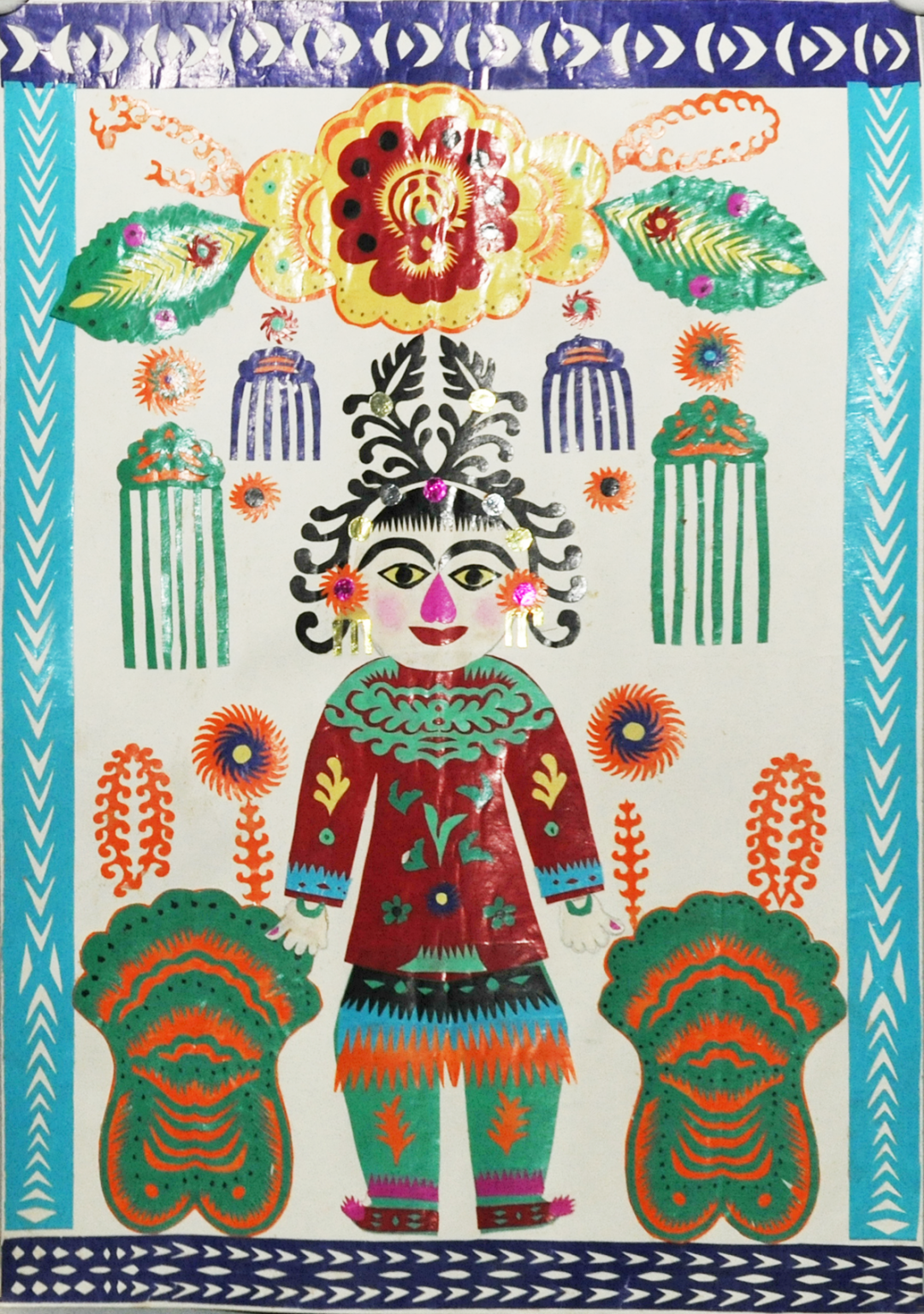 清代,剪纸品种繁多,工艺精巧,名家辈出。长期流传在民间的剪纸也进入了宫廷,在北京故宫的坤宁宫,宫殿顶棚和宫室两旁过道壁间,均贴有很多吉祥剪纸。