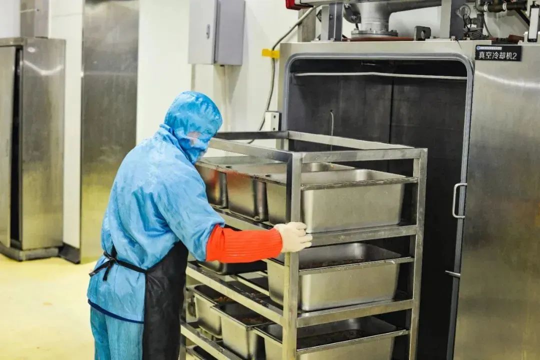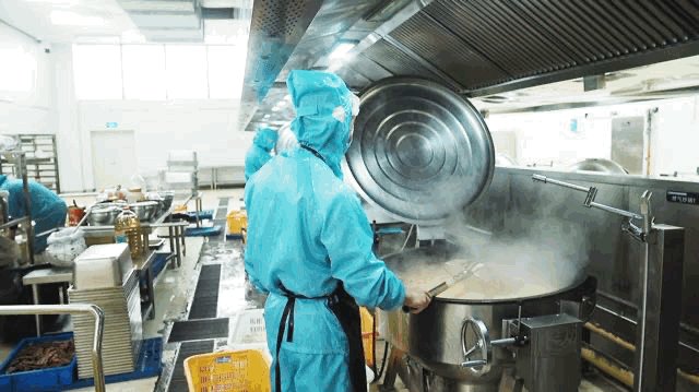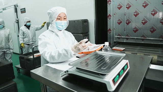 生产区有严格的卫生防疫要求,工作人员进场必须佩戴发网、帽套、口罩,穿上防护服和高筒靴,走进消毒池立正消毒,洗手后用酒精消毒烘干,最后在四面封闭的“风淋房”转圈圈……这严格程度没谁了!