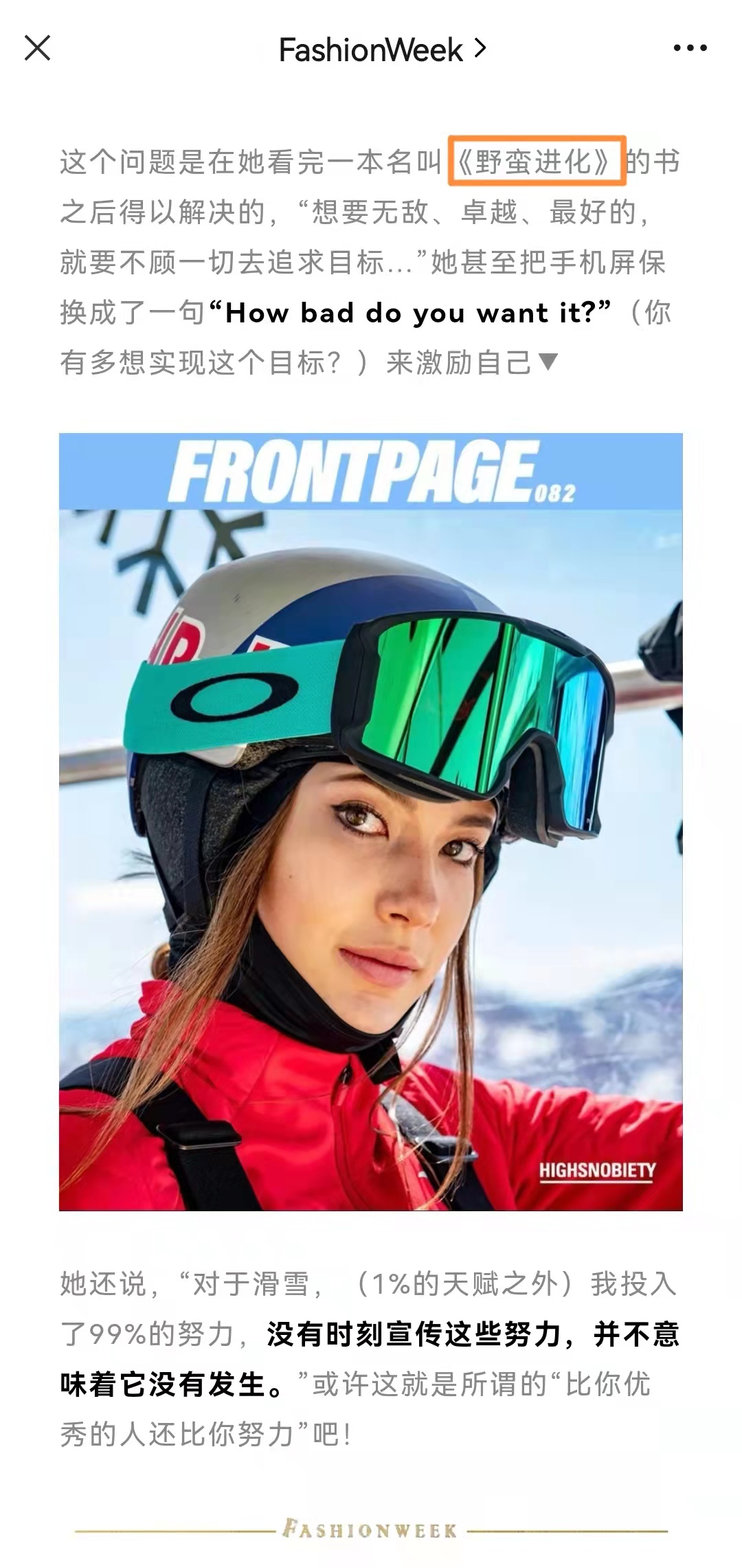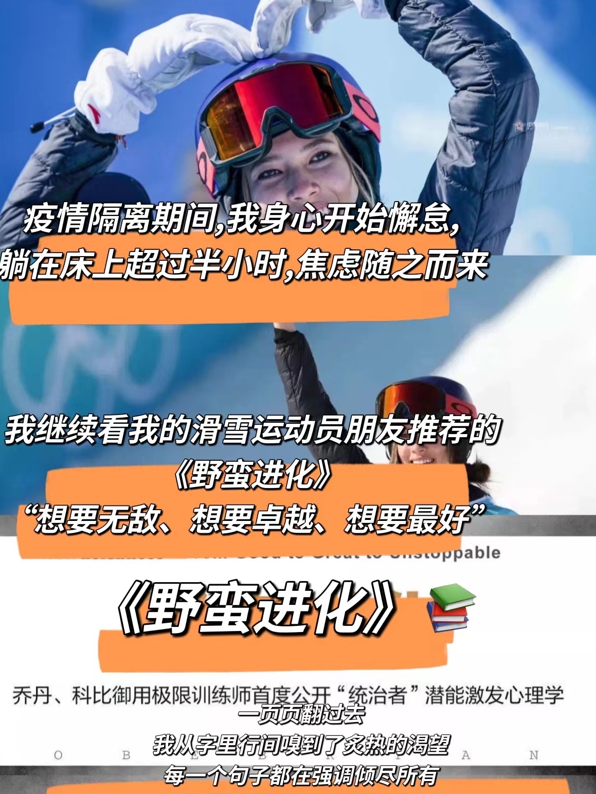 可一周后,她也不受控制地身心开始懈怠下来,焦虑地躺在床上,每日的训练计划迟迟没有完成。正是这个时候,她继续看滑雪运动员朋友推荐的《野蛮进化》。