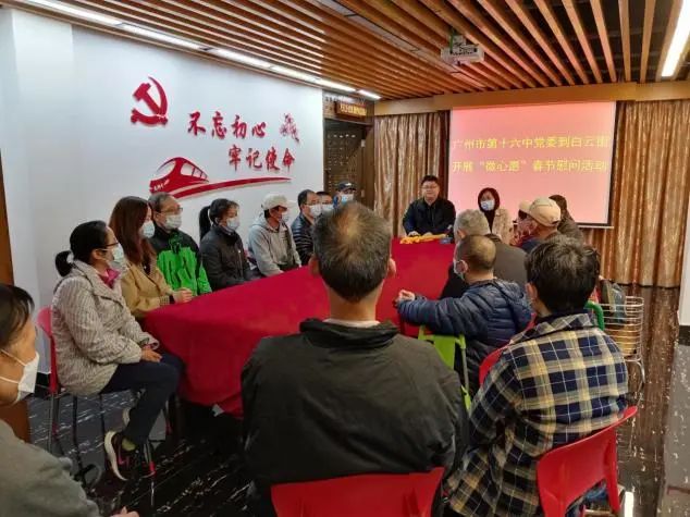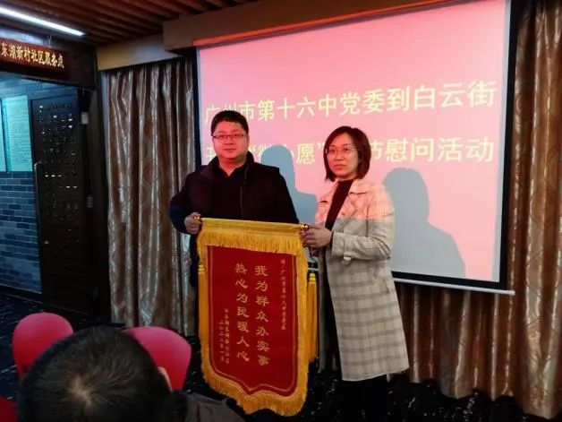 春节前夕,广州市第十六中学党委、白云街道退役军人服务站带上爱心慰问物品为白云街坊及退役军人送上新春祝愿。白云街党建办主任江国超向广州市第十六中学党委代表送上锦旗,对学校的爱心捐赠及一直以来对白云街的支持和关心表示衷心的感谢。