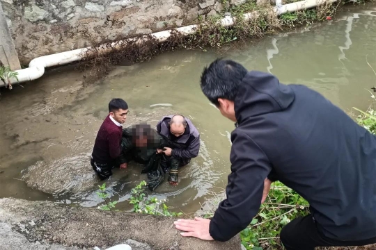 见状,黄伟锋来不及多想,与官路唇村委支部书记郭永红一同跳入冰冷刺骨的河中,迅速帮助男子脱身,在群众的帮助下把男子拉回岸上。