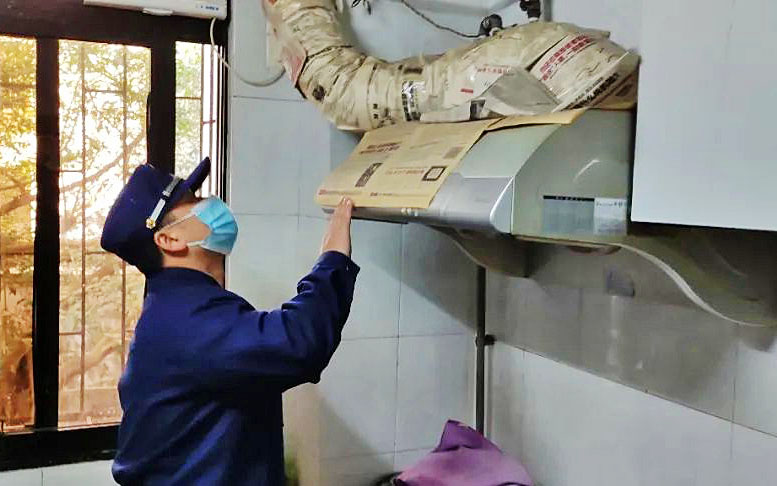 消防队员对独居老人住所的厨房用火用气、取暖设备使用以及楼栋消防设施维护等情况进行隐患排查,帮助老人清理阳台及楼道的可燃易燃物品,叮嘱老人切勿将易燃物品堆积在房屋中。