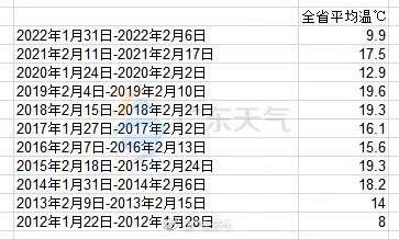 未来的天气捉摸不定,这个春节是实打实地冷。气温方面,春节假期(2022年1月31日到2月6日)广东平均气温9.9℃,比常年同期(13.4℃)偏低3.5℃。10年里,这个时间段广东平均气温有不少年份都在15℃以上,最高的达到19.6℃。