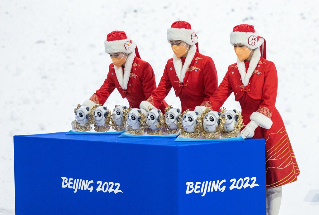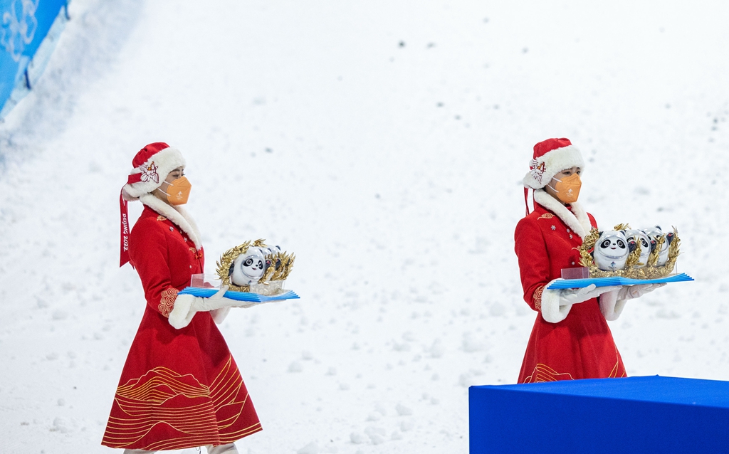北京冬奥会的颁奖仪式简约而不简单,每一个环节都设计感十足。当然,最受欢迎的当属纪念版的冰墩墩了,和墩墩一起亮相的还有颁奖礼仪小姐,她们身穿的颁奖礼仪服“瑞雪祥云”在冰天雪地中特别亮眼。