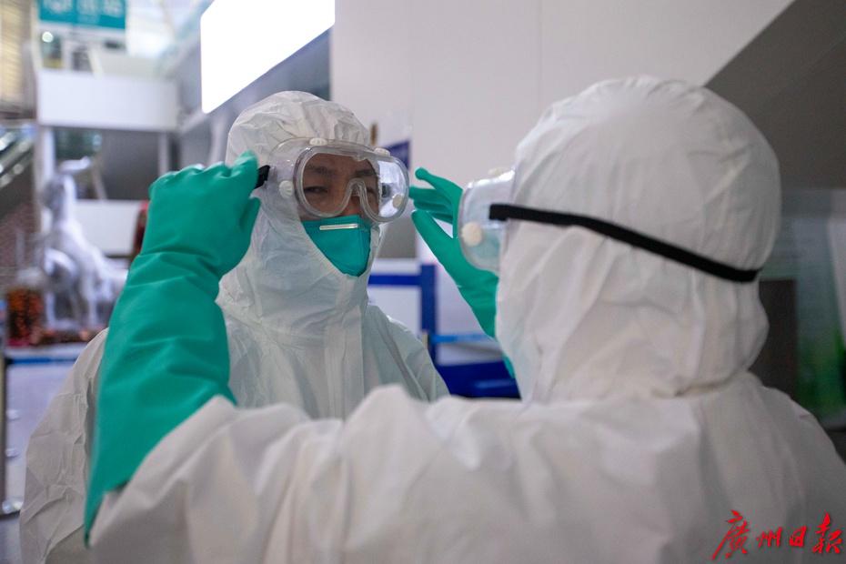 “全套防护服穿好大概需要15分钟左右的时间,各自穿上后我们还需要互相检查,查看是否还有裸露在外的皮肤。”领头的黄泽锐医生对记者说,“今天使用的工具是超低容量喷雾器,光是电池就有10斤重,装满5升消毒液也是10斤,再加上器械,总共差不多30斤。这还是超低容量的,如果是常量喷雾器,重量会达到40斤。”