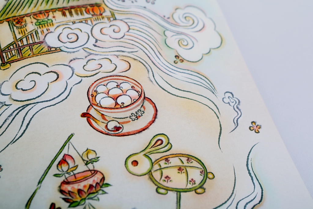 绘本创作工作室的指导老师、也是这套书的文本创作者——向华老师说,《中国节》的创作是一次与时空坐标对话,通过几番考证、整理得来的节日故事,还要完成最重要的一步:提炼成适合儿童阅读的绘本故事,用既单纯又复杂的视觉语言呈现出来。简约但不简单,古老却不失现代,是央美绘本创作工作室的信念和追求。