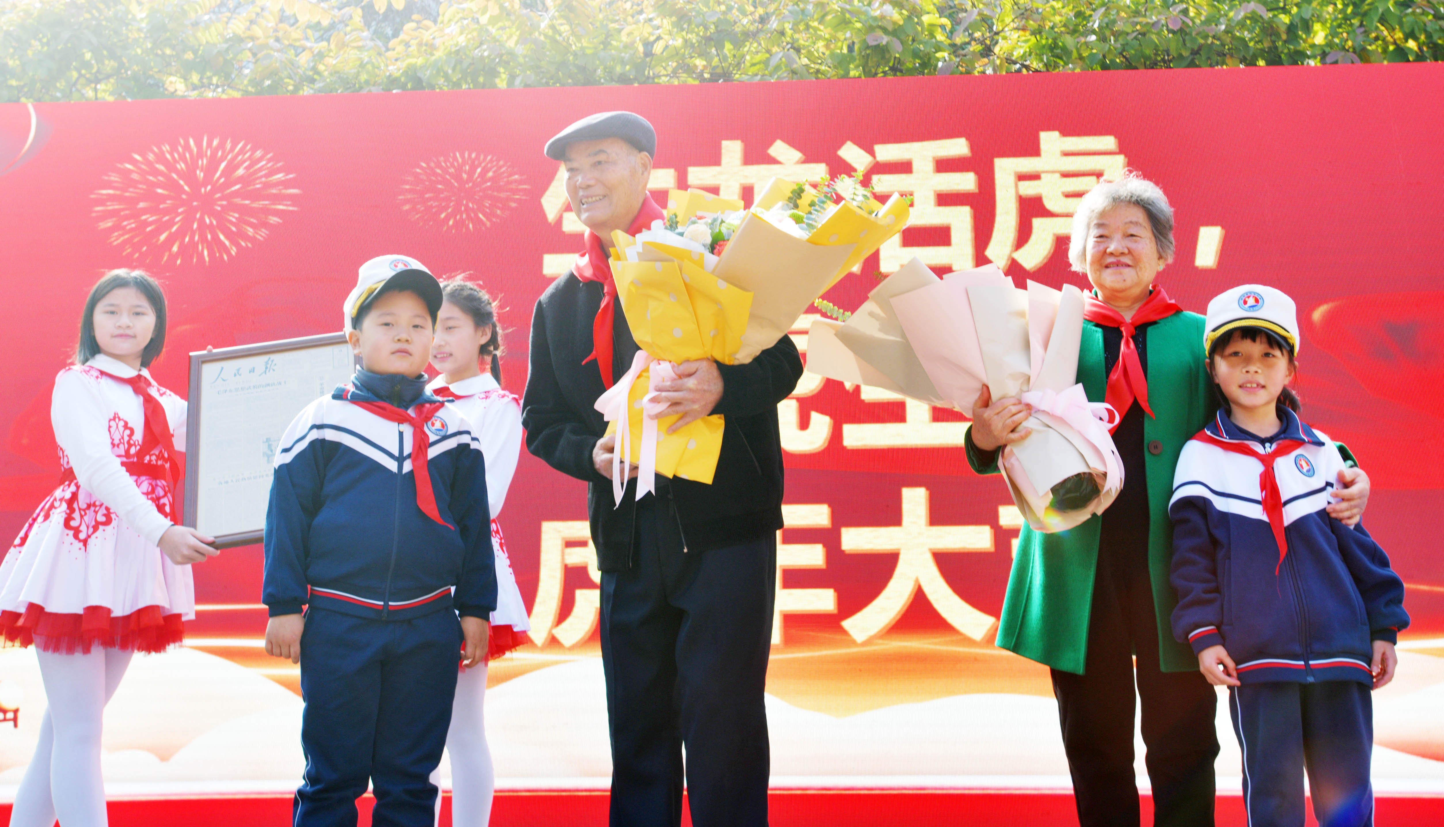 “人民英雄”麦贤得、全国道德模范李玉枝与海珠区邓世昌纪念小学师生们共同赓续红色精神,传承革命薪火。