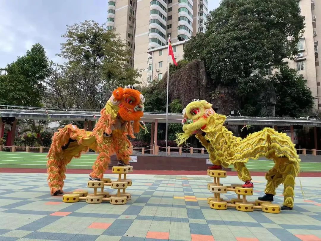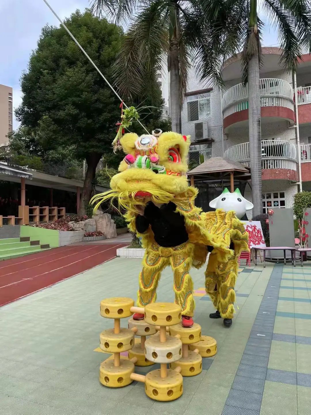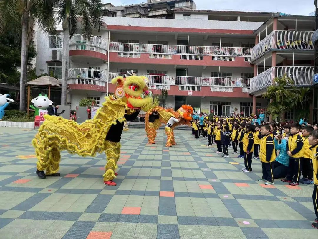 开学啦!今天是新学期开学的第一天,为了让孩子们从小接受中华民族传统文化的熏陶,深切感受节日的欢乐气氛,广州市第二幼儿园邀请了舞狮队进行表演。随着欢乐、喜庆的锣鼓声响起,舞狮排着整齐的队伍,踩着欢快的鼓点,时而翘首仰视,时而摇头摆尾,时而挠痒伸腰,惟妙惟肖地表现出狮子的可爱憨态,并表演了登高采青,向老师、孩子们拜年,恭贺新春。