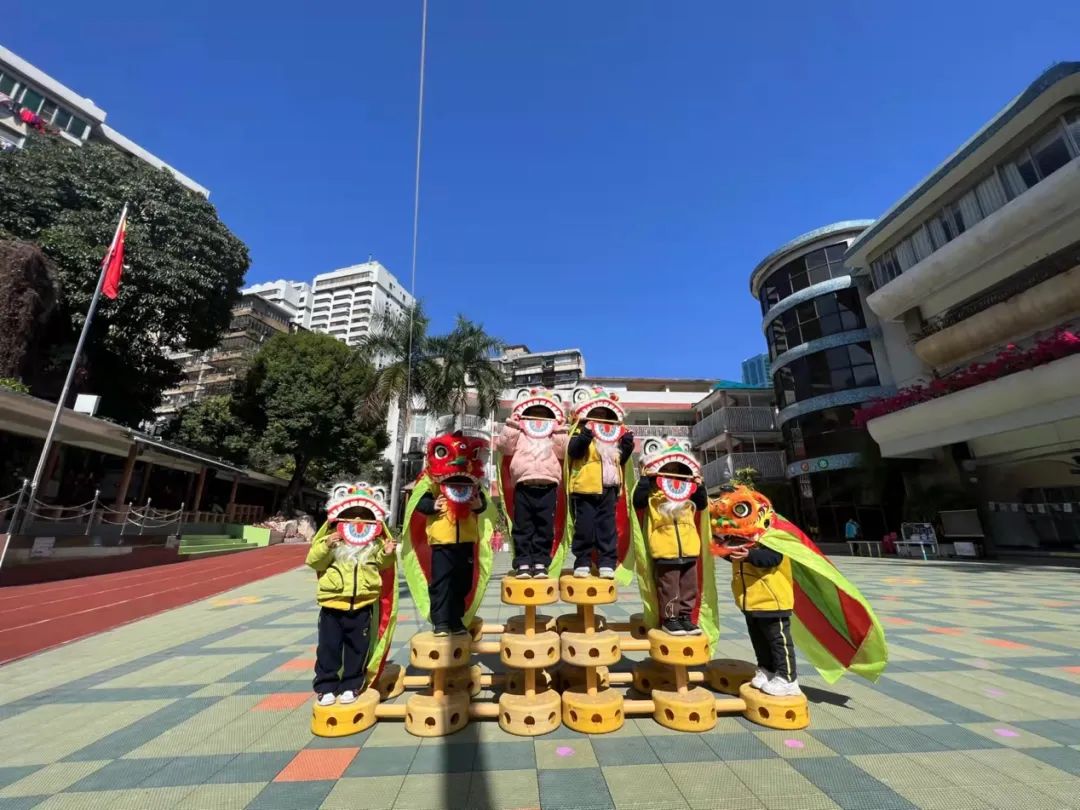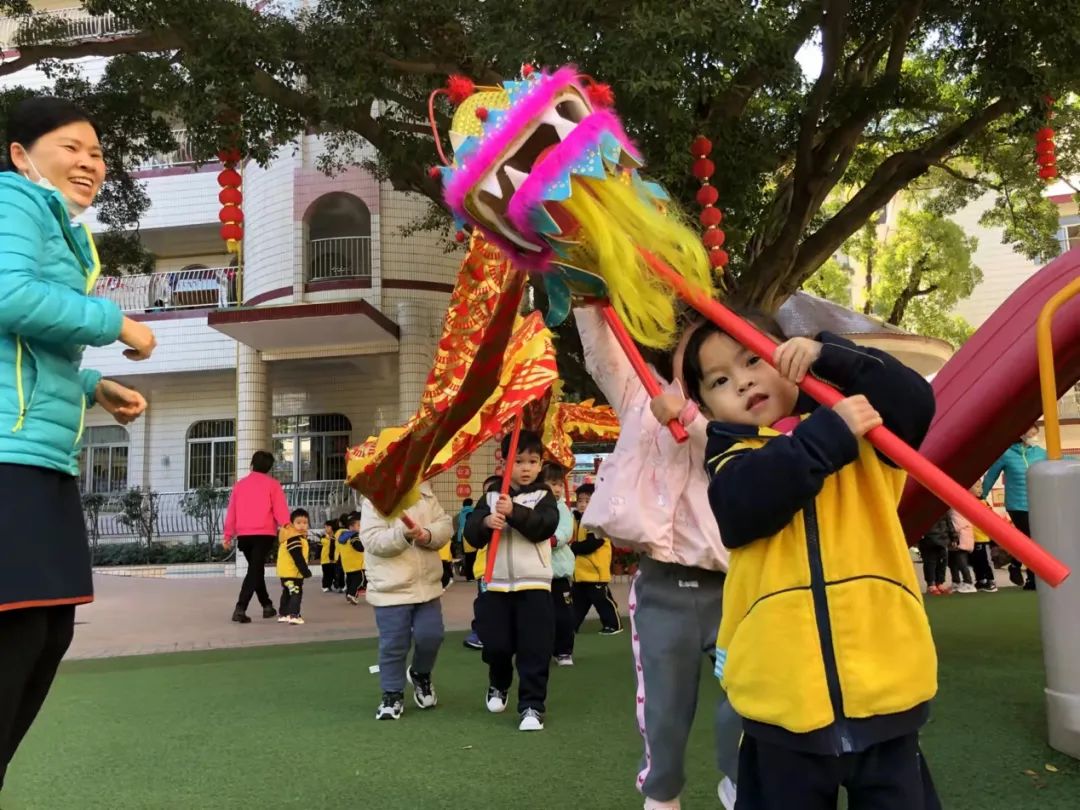 此外,市二幼还增加了幼儿舞龙体验活动,让小朋友们拿着“小狮子头”学习。弓步、丁步、虚步、靠步……“小狮子”们有模有样地练习着,把头上的龙狮舞得活灵活现,神气十足!