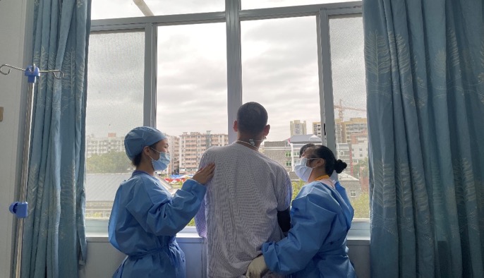 由于找不到家属,住院期间神经外科重症监护病房的医护人员自愿轮流为他清理大小便、抹身、更换衣被,为他提供一日三餐、生活品、营养品,帮他进行肢体功能训练。“我们每天早上6点半和18点会为他擦身,知道他没有家属照顾,我们的护士早上上班会给他带一点牛奶、豆浆或者稀饭,定时提供三餐。”邓榆姝说,“只要护士有时间,就会帮助他做上下肢体康复运动。能下床之后,每天上午下午都会扶着他下床试着走路,还会鼓励他努力试着自己走。”