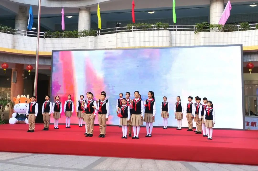 上午九点半,伴随着喜庆的歌声、热烈的欢呼声,旧部前小学2021学年第二学期开学典礼在太阳广场举行,越秀区教育局、人民街道办事处相关领导嘉宾出席活动。开学典礼在庄严的国歌声中拉开序幕,五星红旗冉冉升起,学生们高唱国歌,面向国旗致敬。